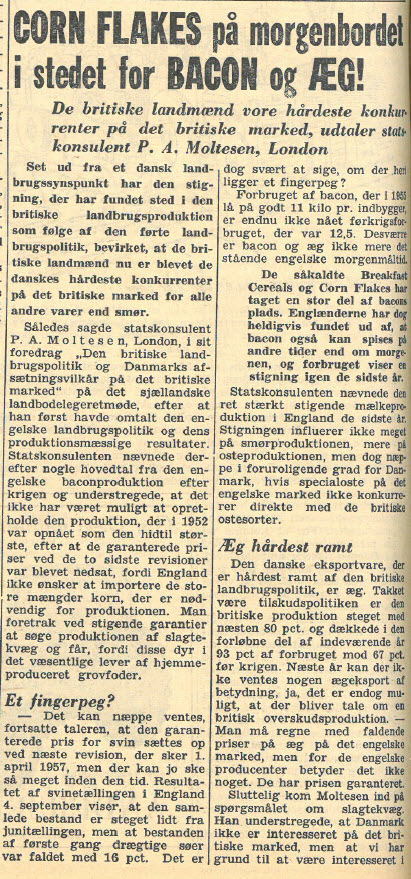 Det trængte man også til efter ”drukneåret” 1954 og ”tørkeåret” 1955. Kornhøsten var normal, men græsproduktionen, som den gang beslaglagde 34 procent af landbrugsarealet, var under middel.