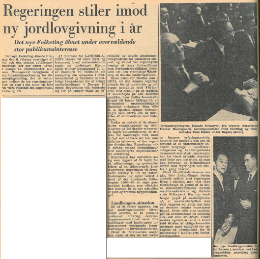 De dårlige konjunkturer med faldende eksportpriser og stigende omkostninger fortsatte, så indtjeningen var på et lavpunkt. Landbrugets ledere måtte konstatere, at ”de sidste tre år har været hårdt på de få reserver, der fandtes i erhvervet”. I februar 1968 blev 15 år med fire socialdemokratiske statsministre afløst af Hilmar Baunsgaards VKR-regering med den fynske gårdejer Peter Larsen som landbrugsminister. Med regeringen forhandlede landbrugsorganisationerne sig til nogle kortvarige likviditetslettelser, bl.a. ved ændring af terminerne for afregning af momsen, der var blevet indført i 1967.