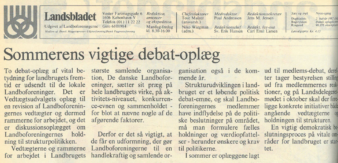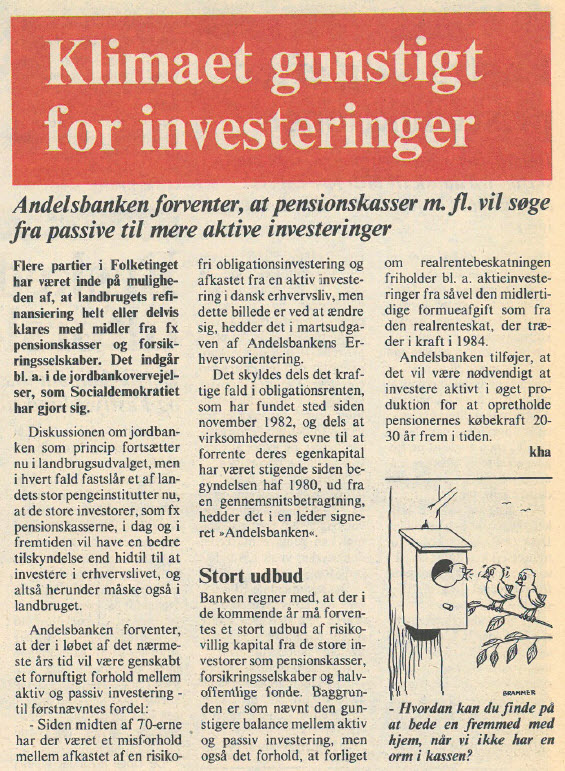 På mere ubemærkede fronter skete der gode fremskridt. Folketinget havde gennemført støttelove for vikarordningerne og for landmænds efteruddannelse, og begge dele blomstrede. En beskæftigelsesfremmende lov om tilskud til lære- og praktikpladser tog landmændene virkelig til sig. Antallet af medhjælpere på landbrugsbedrifterne steg med 800 i 1982 og hele 1.500 i 1983.