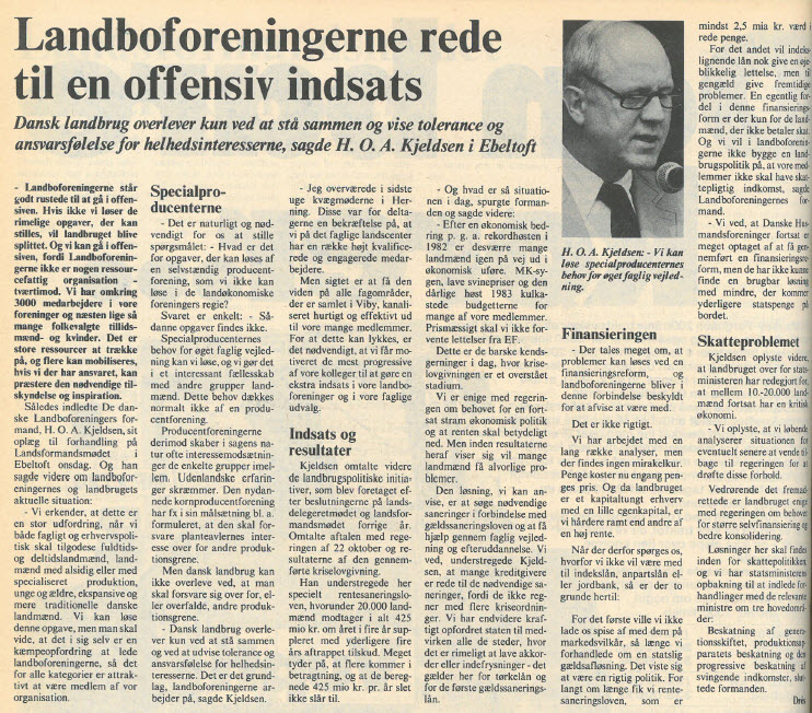 Landmandsfamiliernes økonomi led stadig under krisen og ’83-høsten. For året ’83/’84 beregnede Landskontoret for Driftsøkonomi, at landmandsfamilien tjente 46.000 kr. fra landbruget og 55.000 ved udearbejde. Det var alligevel for lidt, og hovedparten af bedrifterne havde negativ konsolidering. Der var ca. 800 tvangsauktioner i ’84. Kriseforanstaltningerne var endelig ved at være på plads, og landbrugsorganisationerne kunne nu politisk satse på mere langsigtede løsninger.