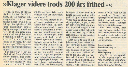 Stor aktivitet udfoldede sig også omkring markeringen i juni af 200-året for stavnsbåndets ophævelse. Mange landmænd tænkte – og man sagde det højt: ”Drop det. Der er ikke noget at fejre”. Det blev der alligevel, som en mærkedag for den personlige friheds gennembrud i Danmark. Tusinder engagerede sig i møder, udstillinger, egnsspil m.v.