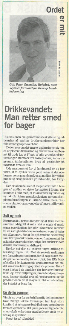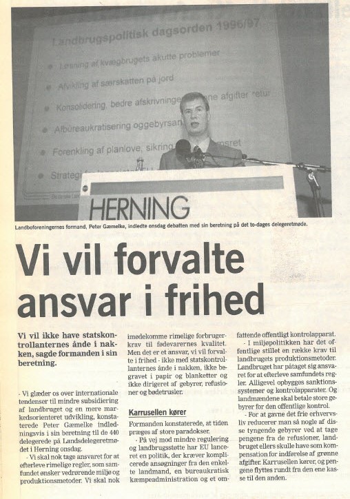Det var en ny stemme (Peter Gæmelkes), der nu tolkede erhvervets situation, både i medierne (det viste han sig at være god til) og på møderne. Hans stærke ønske om at være positiv, åben og optimistisk havde trange kår i lyset af det omsiggribende bureaukrati, der forbitrede landmændenes dagligdag. I sin første delegeretmødeberetning sagde han: ”Bureaukratiet har i Danmark nået et niveau, der får ældre landmænd til at forlade erhvervet før tiden og afskrækker unge fra at blive selvstændige. Burde vi tage en konfrontation?” Hans eget svar var: ”Vi valgte dialog og saglighed. Vi forventer det samme af vore modparter”.