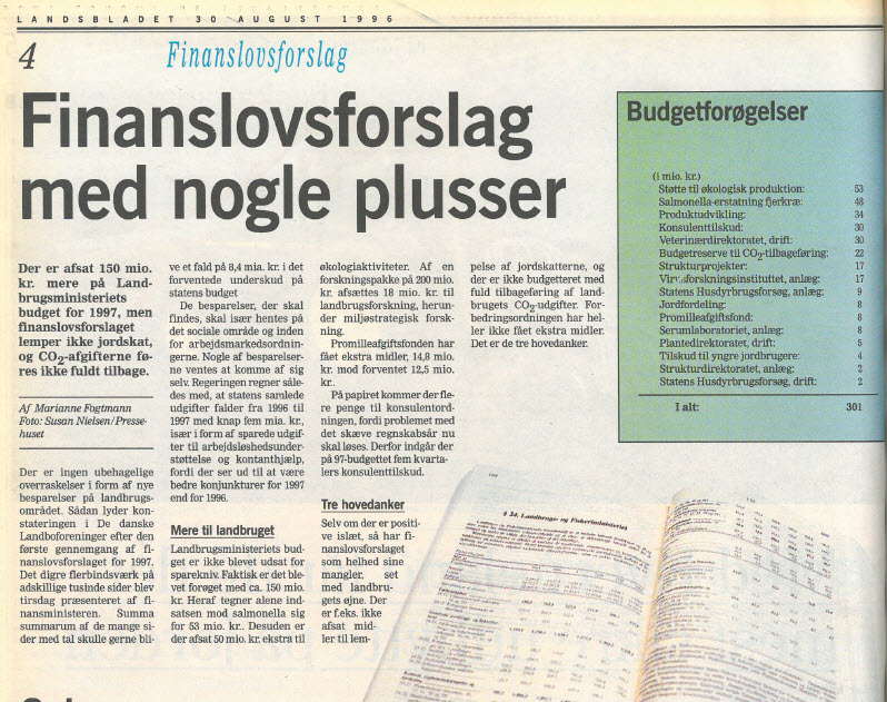 1996 var et år, hvor mange forudsætninger var opfyldt for at gøre det til et af de gode landmandsår. Minus’et i karakterbogen var den frustrerende vækst i bureaukrati og faglige meningsløsheder, som det syntes umuligt at bekæmpe.