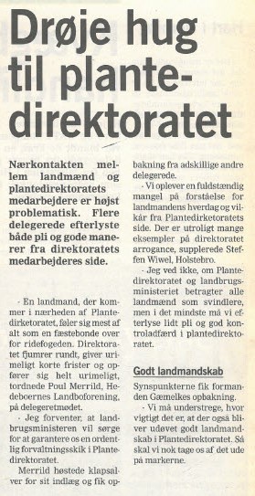 Midt i organisationstummelen tog De danske Landboforeninger afsked med organisationens sekretariatschef siden 1966, Jørgen Skovbæk. Ansat i Landboforeningerne siden 1959 var han en nøgleperson i landbrugets politiske og faglige arbejde i hele denne dramatiske periode. Afløseren blev adm. Direktør Carl Aage Dahl.