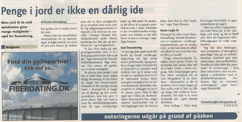 Det kunne ikke blive ved med at gå. Bankfolk og analytikere spåede, at prisen måtte ned igen, men først med finanskrakket i september 2008 blev kassen smækket i. Det smæk ramte mange landmænd så hårdt, at de kom til at lide under det i mange år fremover, og havde de ladet sig lokke ind i mere spekulative lånearrangementer, kom mange aldrig på fode igen. For sektoren som sådan betød det, at man kunne se frem til en årrække med investeringer, der var mindre end nedslidningen.