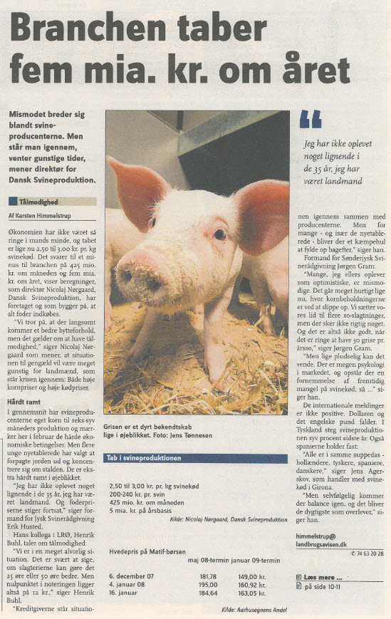 Trods de begyndende krisetegn og en svinesektor, der heller ikke i 2008 fik ordentlige indtjeningsforhold, var troen på fremtiden intakt. Ganske vist spåede Dansk Landbrugs formand Peter Gæmelke ved årets slutning at ”2008 var et skodår – 2009 bliver problematisk” – men det hindrede ikke organisationen i at igangsætte et fremadrettet og optimistisk arbejde med at tegne linjerne for en fremtid med masser af muligheder.
