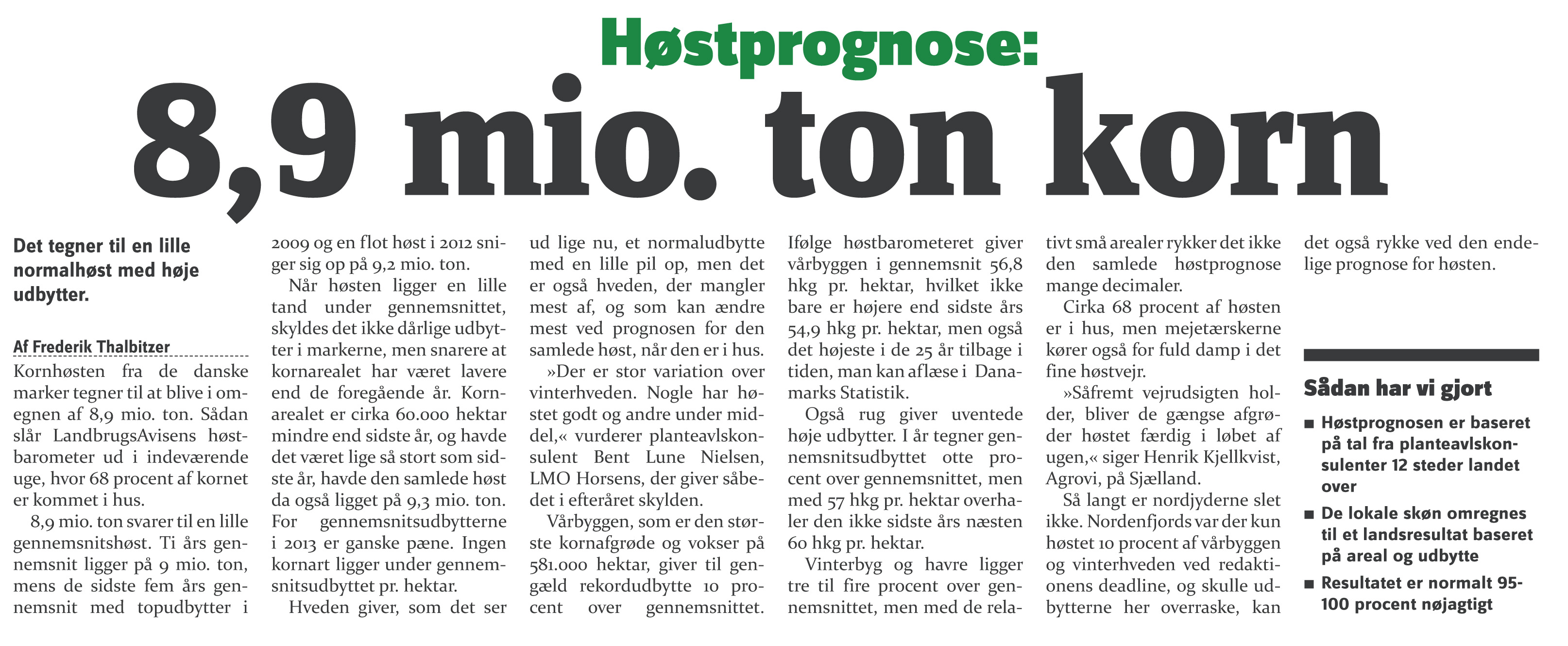 Driftsøkonomisk må 2013 også betragtes som et ganske godt år, nu også med bedre resultater for mælkeproducenterne. Rekordlave renter hjalp godt med, og selv jordpriserne begyndte at stabilisere sig, vel at mærke efter et fald, der levede op til de mest dystre forudsigelser. Priserne var rent faktisk omtrent halveret siden den euforiske og helt urealistiske top i 2009. En gruppe på 10-15 procent af landmændene hang da også fortsat ubehjælpeligt fast i dårlig indtjening og høj gæld.