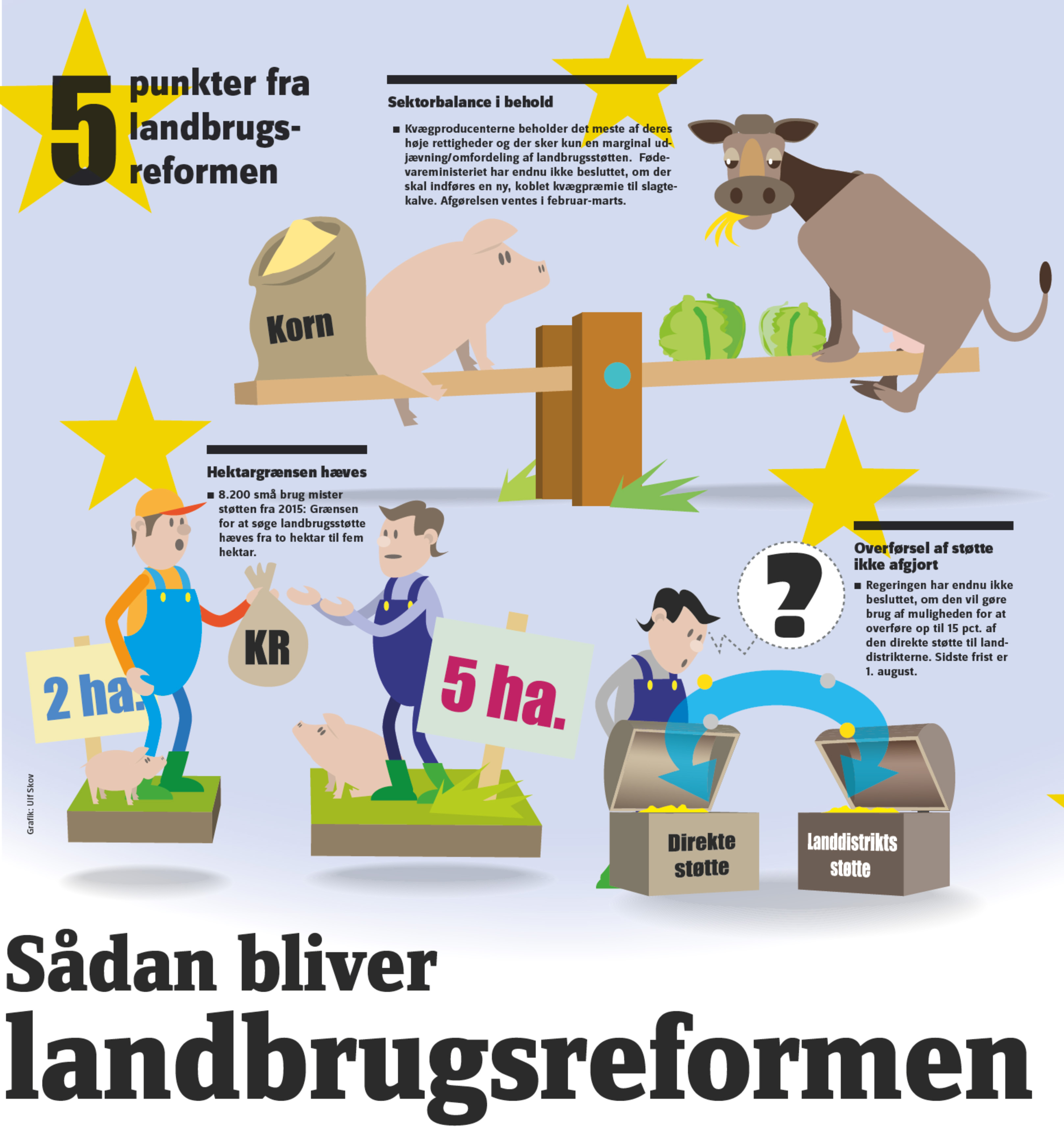 I europæisk sammenhæng blev vedtaget endnu en reform af landbrugspolitikken med nye, bureaukratiske regler og en mindre reduktion i den direkte støtte. Samt en stadfæstelse af, at mælkekvoterne året efter skulle forsvinde helt – og også sukkerstøtten stod til afvikling.